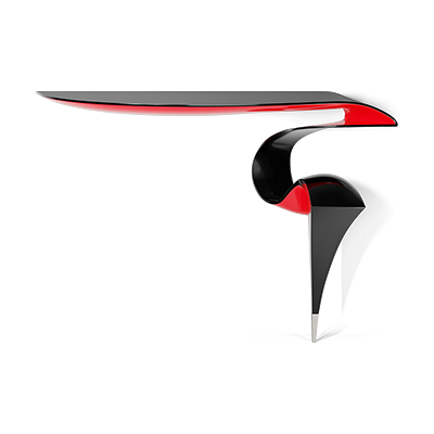 Striking and poised, the Pelican console table channels the elegant stillness of its namesake with a hand-carved mahogany base and a floating, wall-mounted top. Choose from a leather-lined or fully finished interior, accented by aged brass or brushed nickel leg tips—each variation a modern statement of craftsmanship and sculptural elegance.